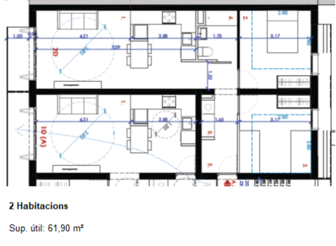 Disposarà de 8 habitatges de lloguer, 5 de 1 habitació i 3 de 2 habitacions. Els habitatges també podran gaudir d’aparcament de bicicletes.