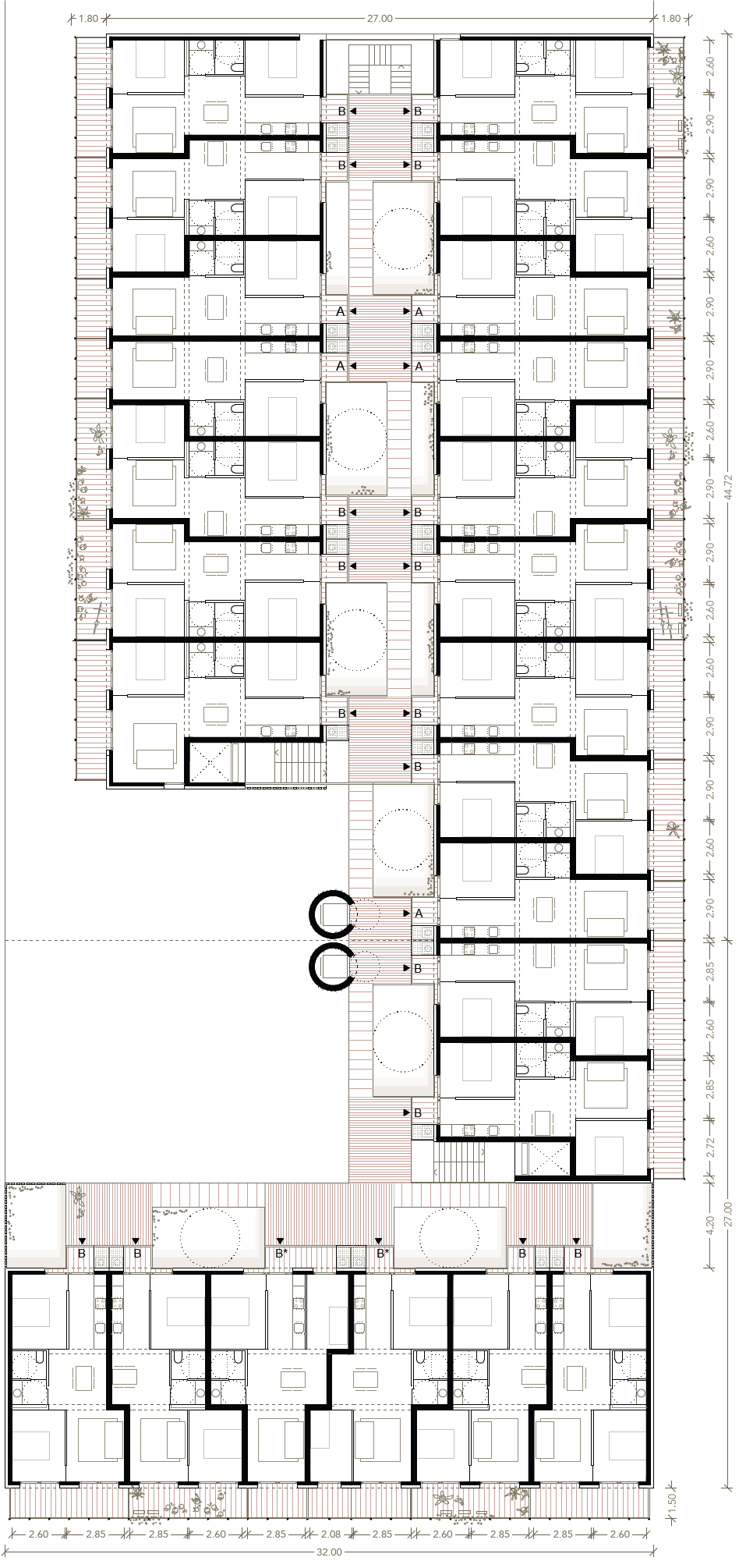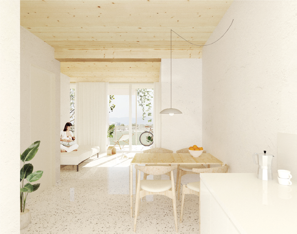 La promoció disposarà de 71 habitatges de lloguer; 17 d’una habitació, 53 de dos habitacions i 1 de tres habitacions. Els habitatges s’han dissenyat potenciant la calidesa i una percepció d’amplitud de l’espai, s’ha aprofitat al màxim la seva superfície interior, sense passadissos i tots disposaran de ventilació creuada i de terrassa.