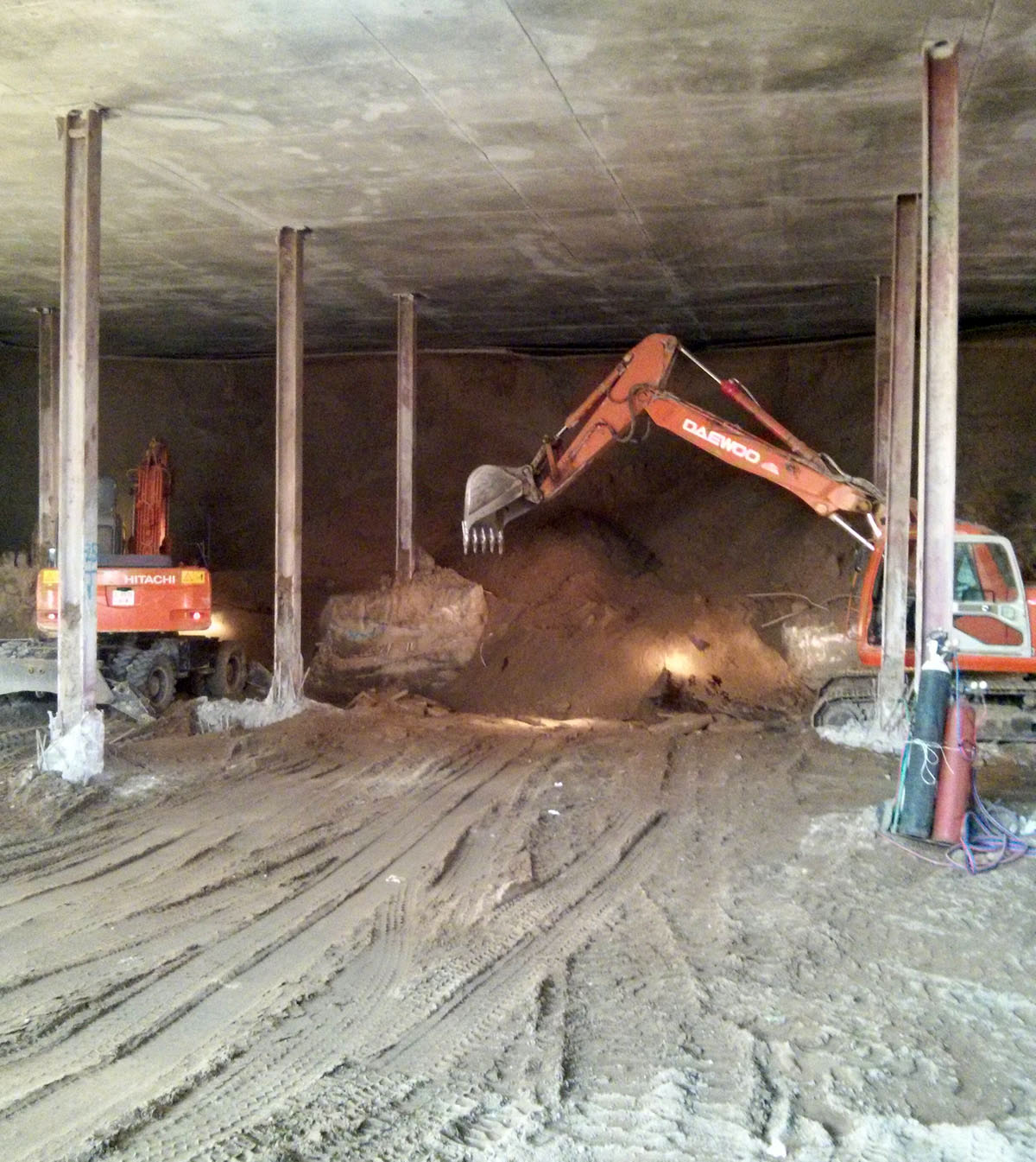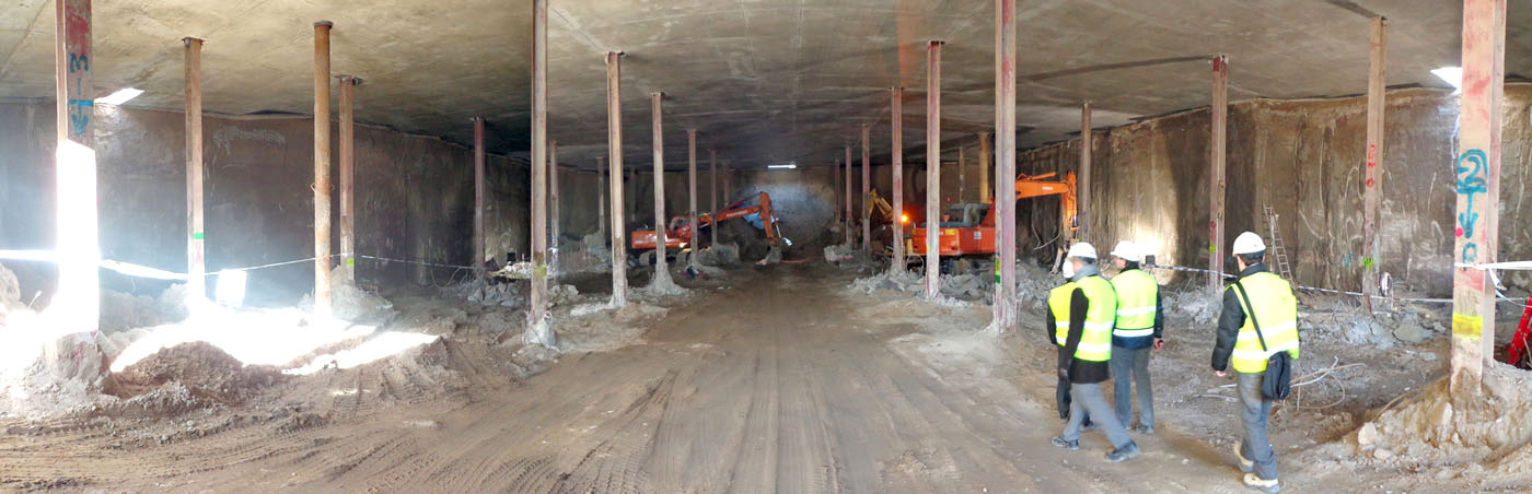 Excavación Excavación bajo la cubierta hasta la cota de fondo de excavación. Excavación aparcamiento Plaza Catalunya Actuaciones relacionadas: Construcción aparcamiento y reordenación de la Plaza Cataluña
